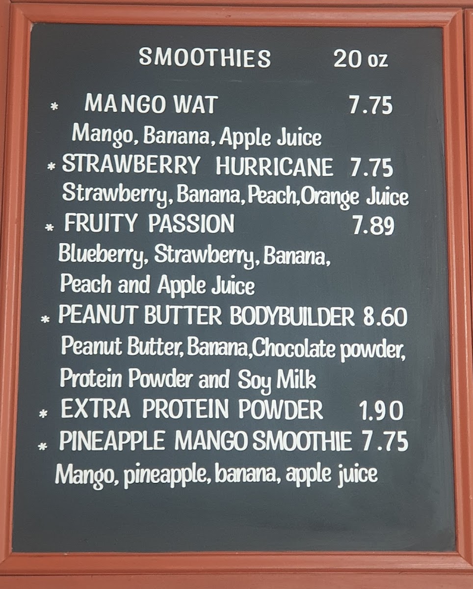 Spinach, banana, mango, pineapple and almond milk. 20oz
